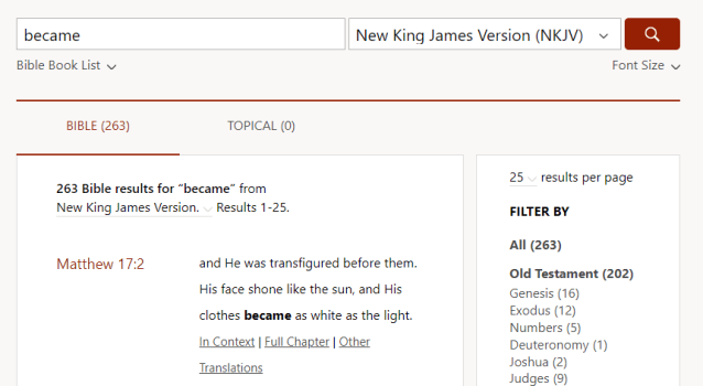 Then I went to BibleGateway.com and searched on the word “became”, with the New King James Version selected: