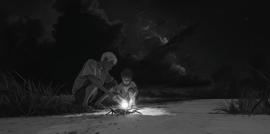 The next story for our Saturday practice group is about a father and son, providing a warm narrative that frames the transmission of knowledge from one generation to the next. This will be one of the longer pieces that we’ve used for our group, and for good reason: we get to see both a small slice of the life led by the father-son pair as well as several sets of instructions that detail the fabrication and use of various types of traps and other implements for gathering crabs under different conditions. And on a more personal note, our friend Dabit will be facilitating several Saturday practice sessions in our stead while we take some time for a loss in our family.